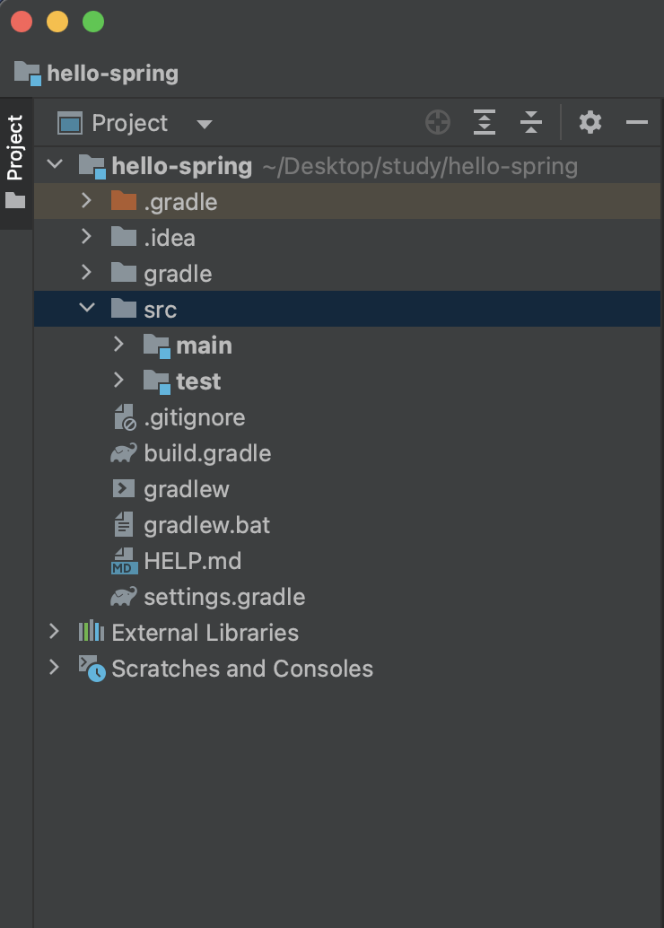> ๊ธฐ๋ณธ์ ์ผ๋ก src ํด๋ ์๋์ main๊ณผ test๊ฐ ๋๋ ์ ธ ์์
