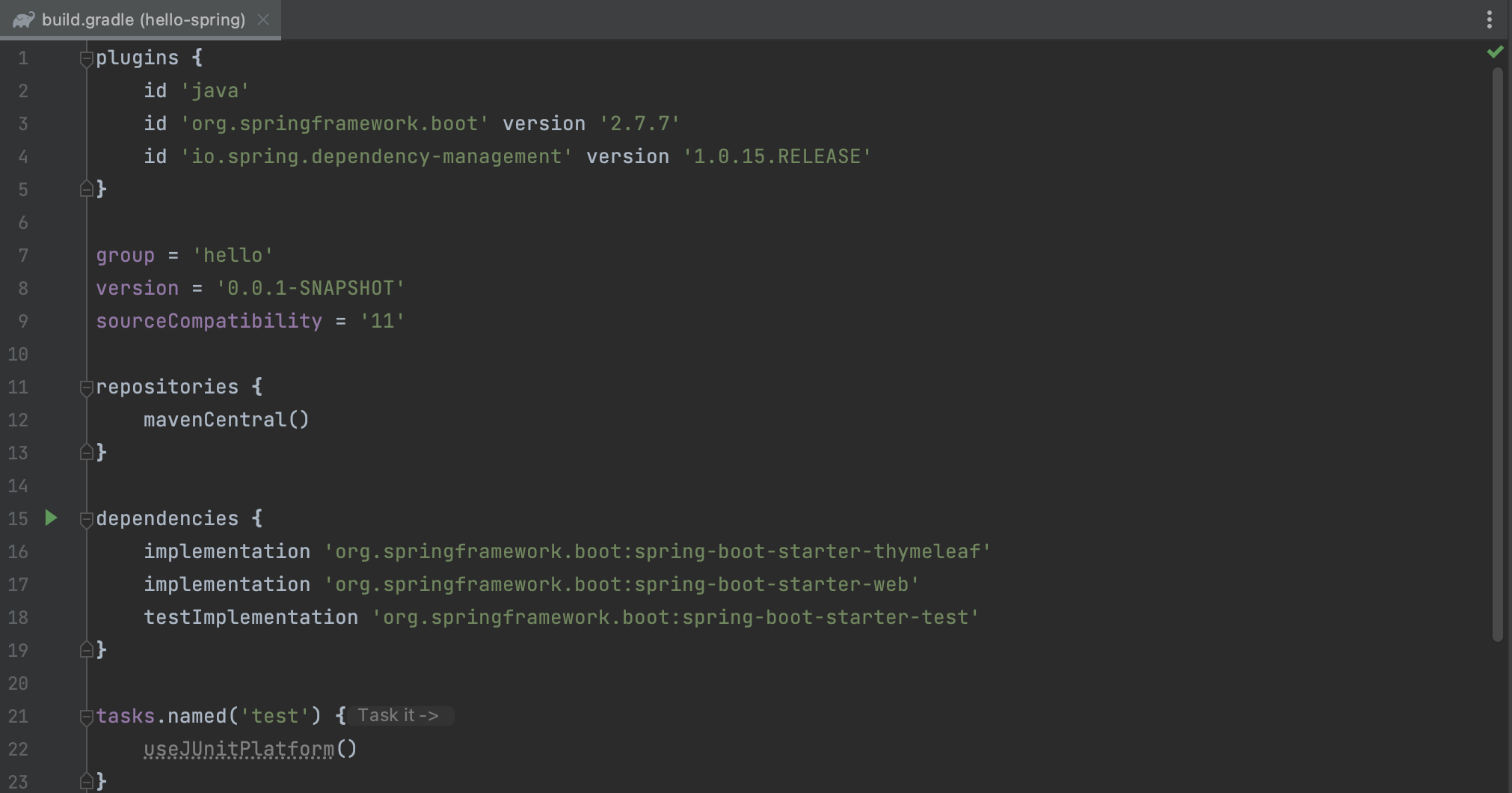 Open > study > hello-spring > build.gradle ์ ํ ํ Open