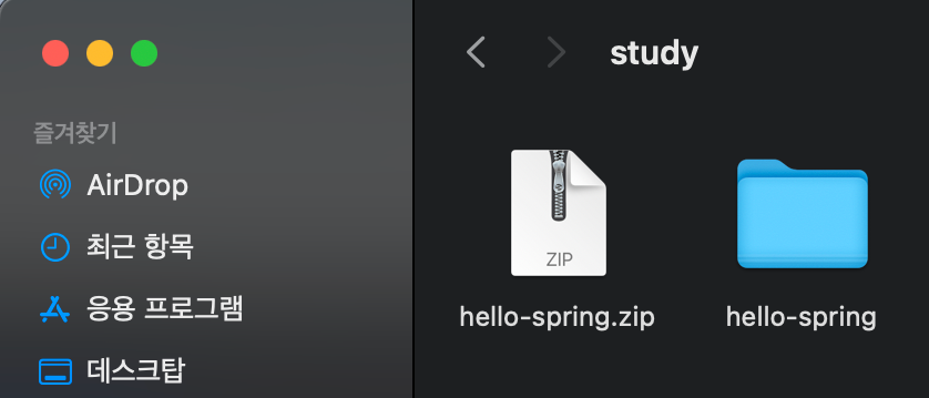 > study ํด๋ ์๋ ๋ค์ด๋ก๋ ๋ฐ์ hello-spring.zip ์์ถ ํ๊ธฐ