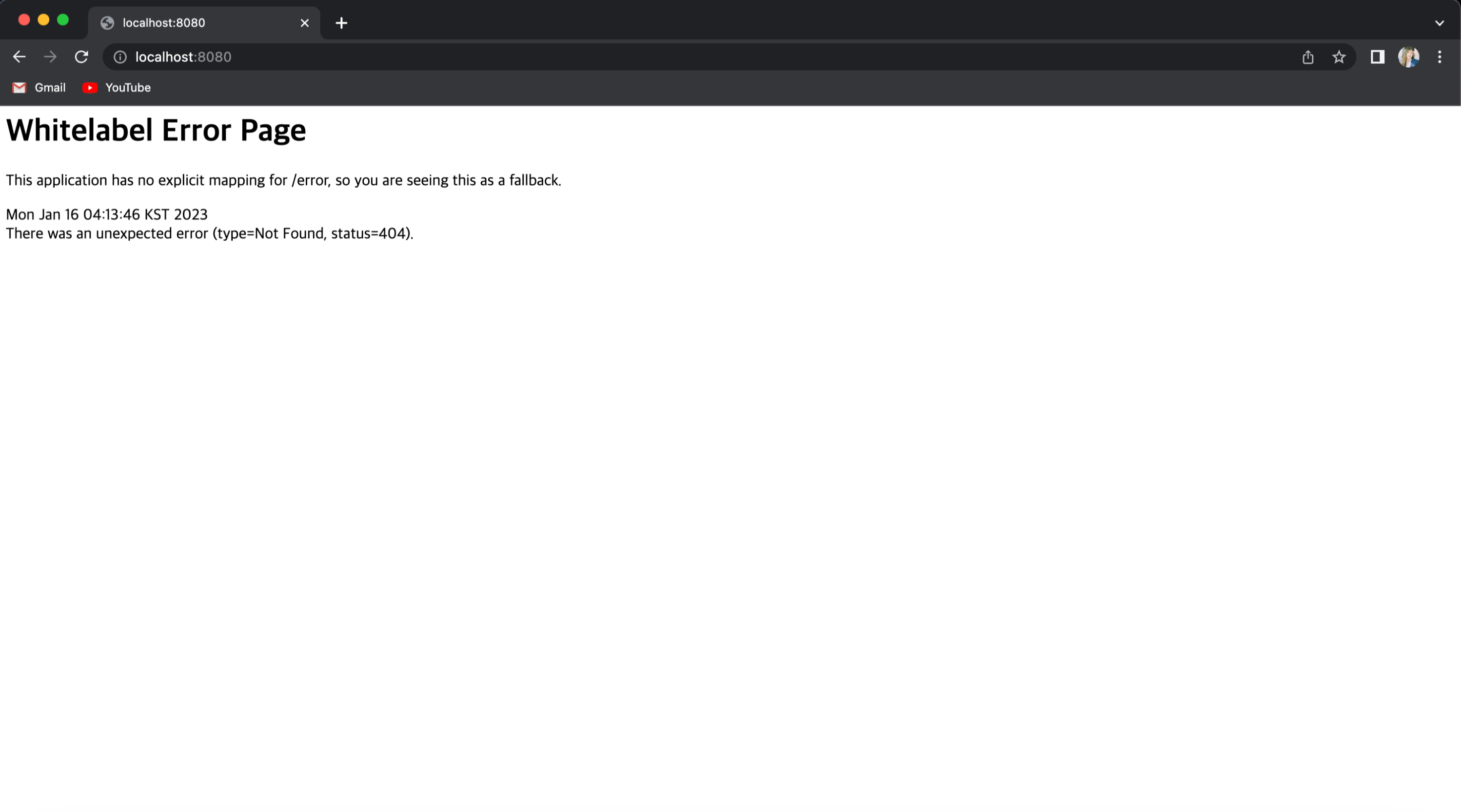 > ์์ ๊ฐ์ด ์๋ฌ ํ์ด์ง๊ฐ ๋จ๋ฉด ์ ์์ ์ฑ๊ณตํ ๊ฒ์ด๋ค.